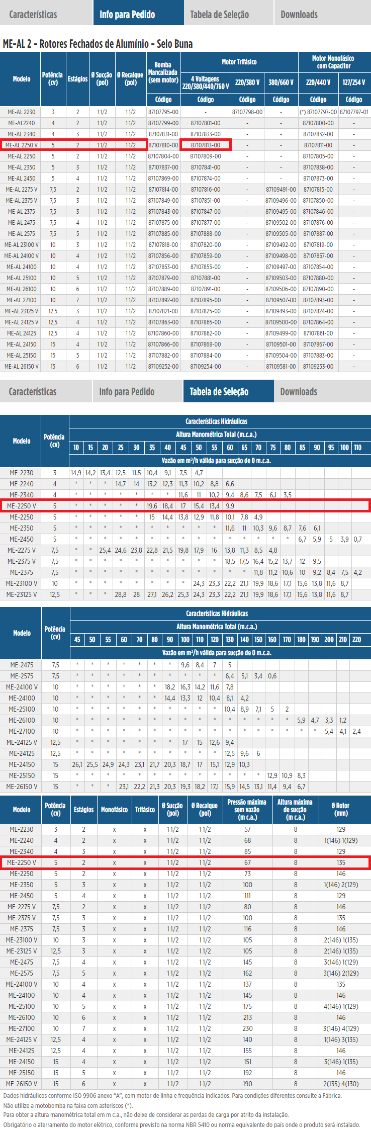 Bomba Centrífuga Schneider ME-AL 2250 V 5,0 CV Trifásico 220/380/440/760V