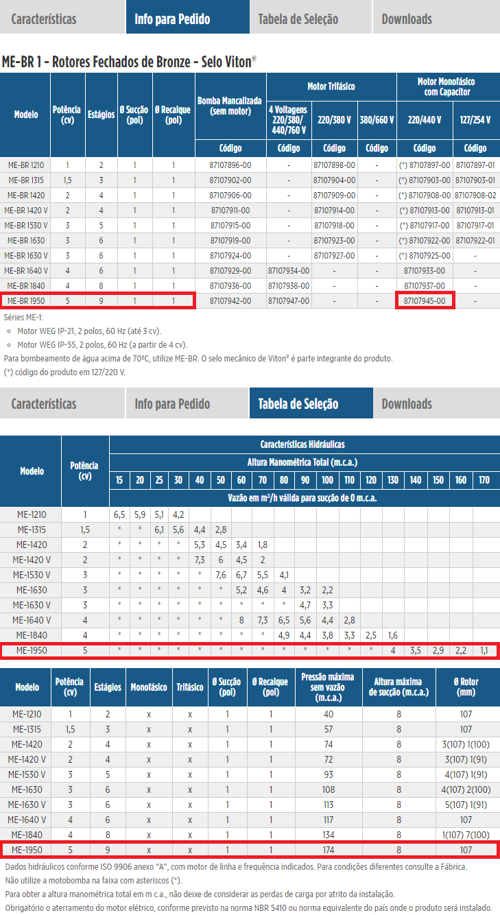 Bomba Centrífuga Schneider ME-BR 1950 5,0 CV Monofásico 220/440V