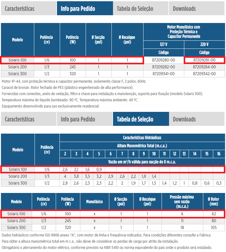 Bomba de Água Pressurizadora Schneider Solaris 100 1/6 CV 220 V Monofásico