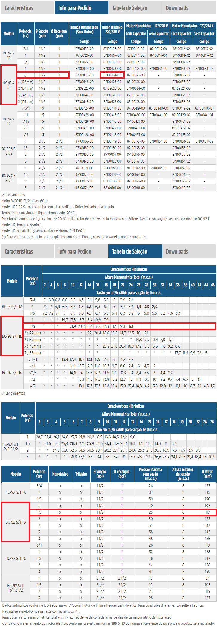 Bomba Centrífuga Mono Estagio Schneider BC-92 T 1B 1,5CV Monofásico 127/220V.