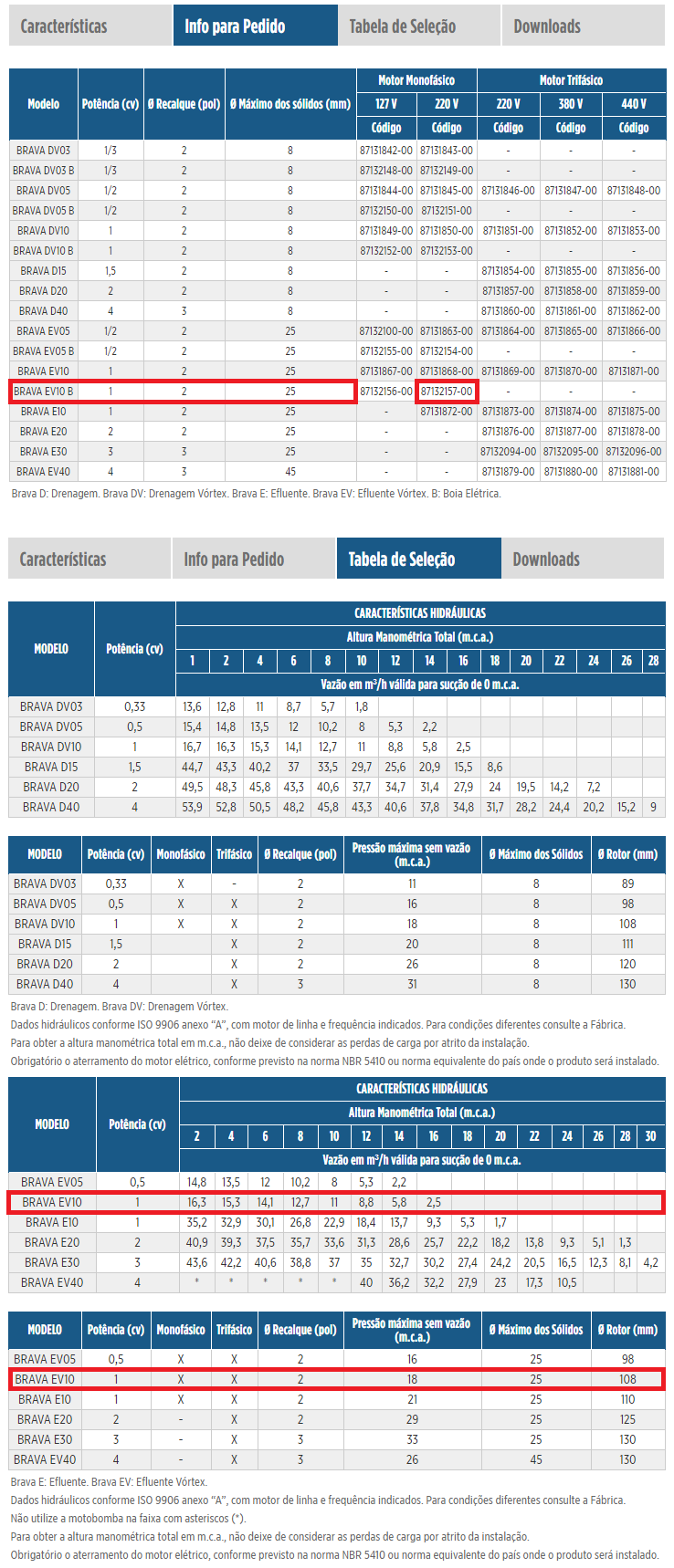Bomba Submersível Schneider Brava EV10 B 1CV - 220V Monofásica