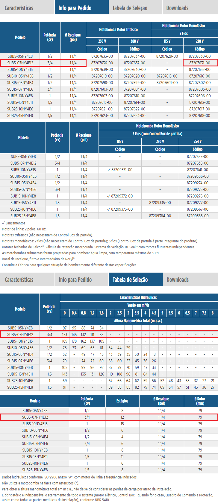 Bomba Submersa Schneider centrífuga multiestágio, acopladas a motores elétricos projetados especialmente para funcionar dentro da água, a grandes profundidades. A Bomba Submersa SUBNY é utilizada para bombeamento de água subterrânea em poços tubulares com diâmetro interno a partir de 4”. Um ano de garantia conforme termo do certificado que acompanha o produto.