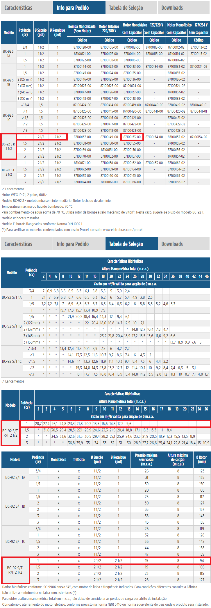 Bomba Centrífuga Mono Estagio Schneider BC-92 T 1B 2,0CV Trifásico 220/380V.