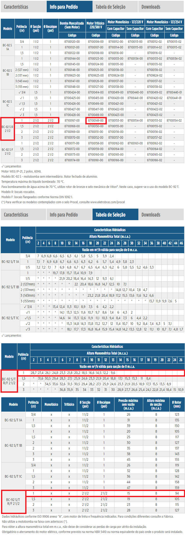 Bomba Centrífuga Mono Estagio Schneider BC-92 T F 2 1/2 2,0 CV Trifásico 220/380V.