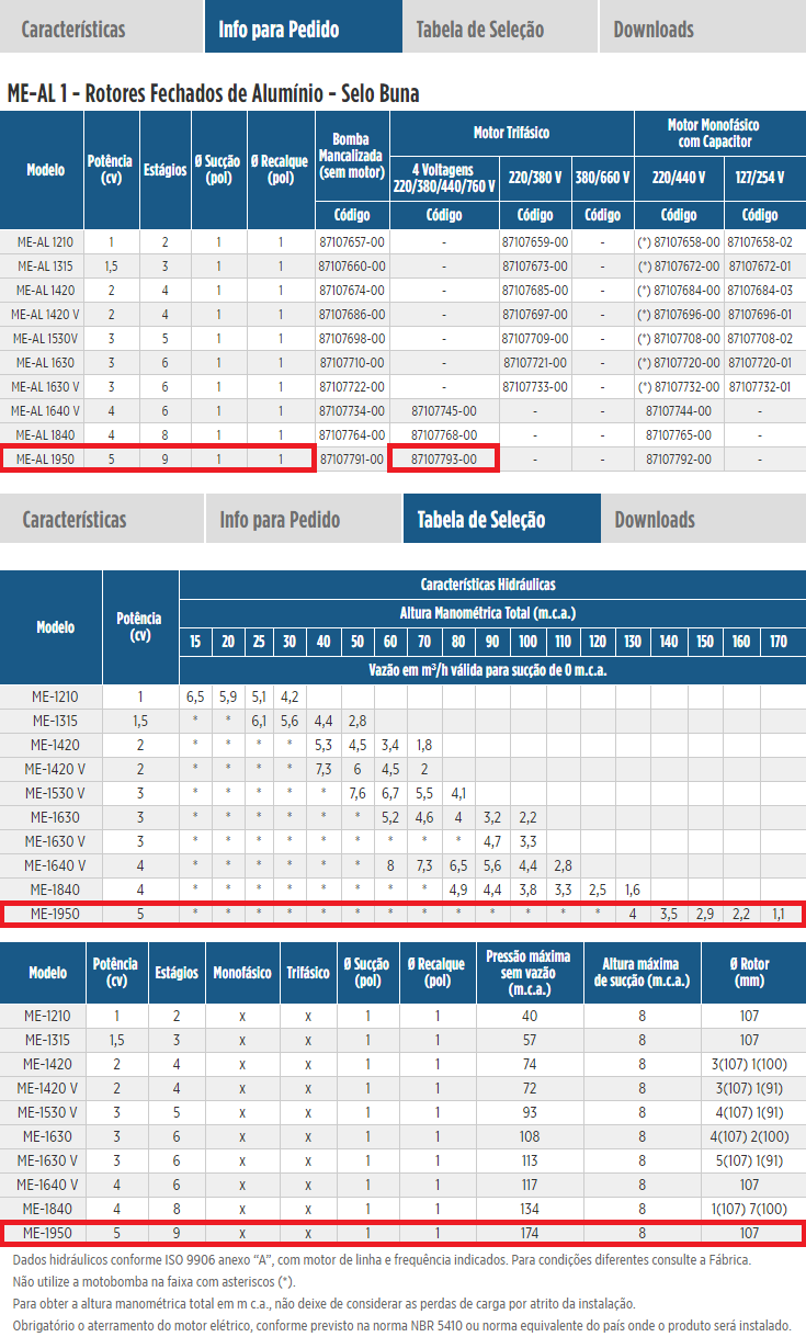 Bomba Centrífuga Schneider ME-AL 1950 5,0 CV Trifásico 220/380/440/760V