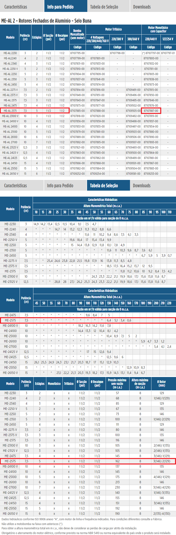 Bomba Centrífuga Schneider ME-AL 2275 V 7,5 CV Trifásico 220/380/440/760V