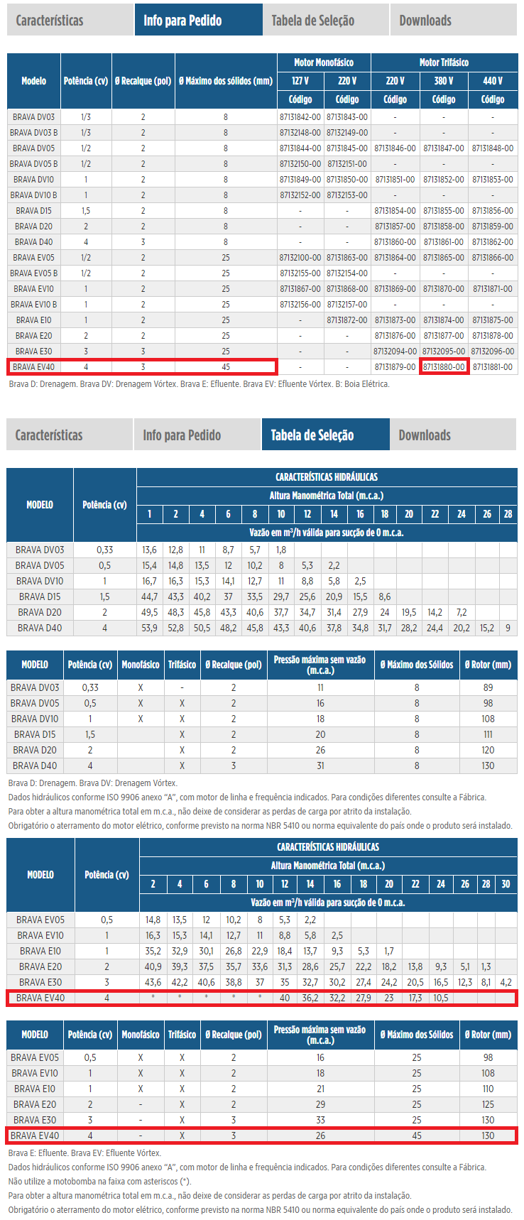 Bomba Submersa Schneider Brava EV40 4CV - 380V Trifásica